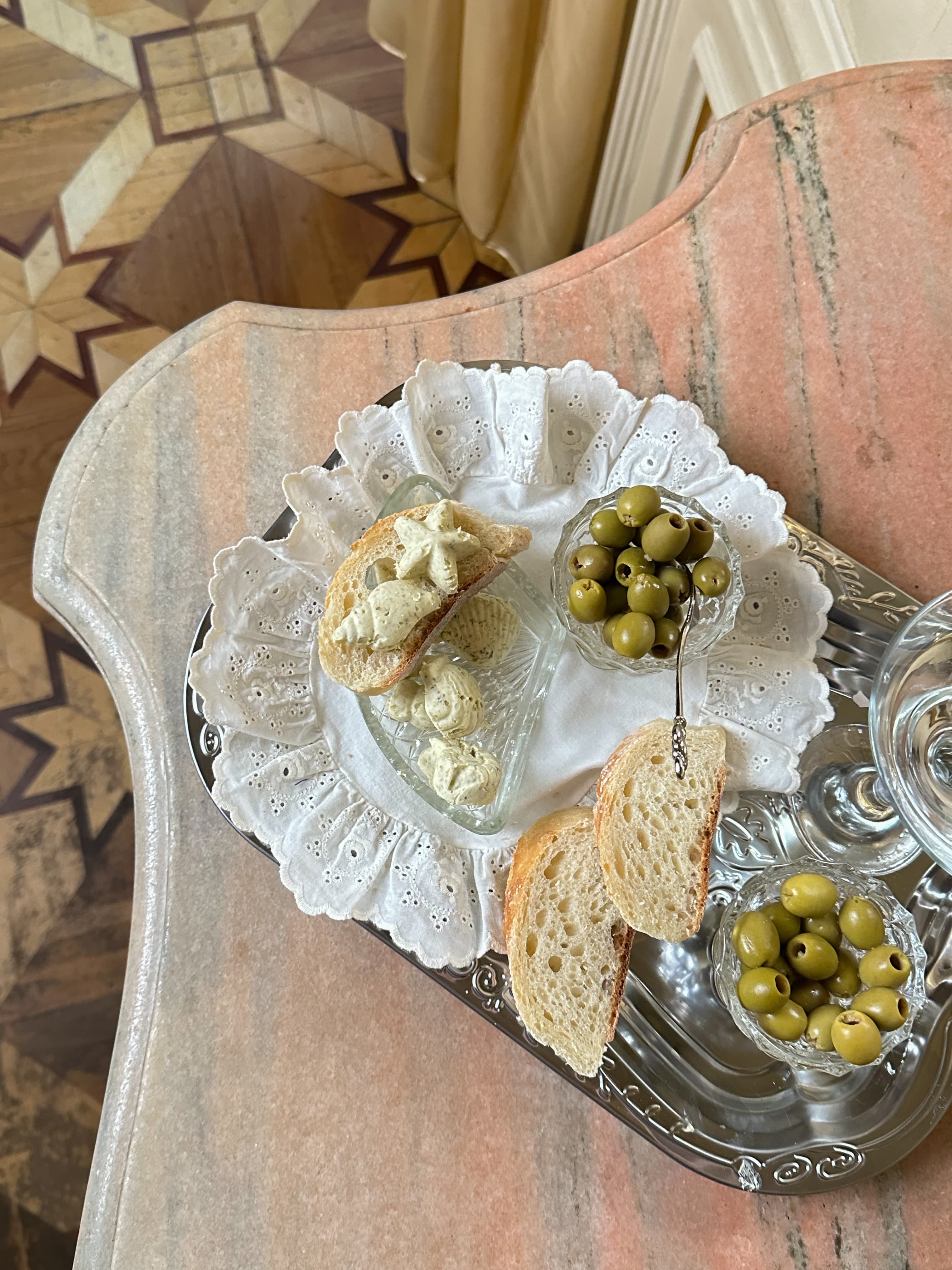 масло солодковершкове екстра (82,5 % жиру), каперси, зелені оливки, мальдонська сіль